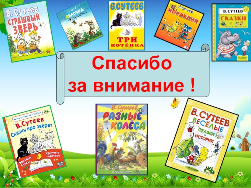 В. Г. Сутеев написал около 40 сценариев для мультипликационного кино.