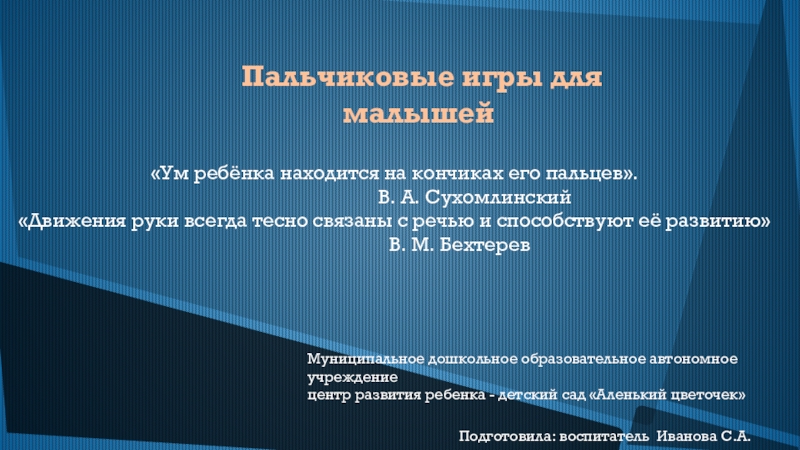 Здравствуй, пальчик, как живешь?»