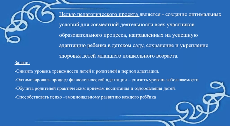 -Оптимизировать процесс физиологической адаптации – снизить уровень заболеваемости.