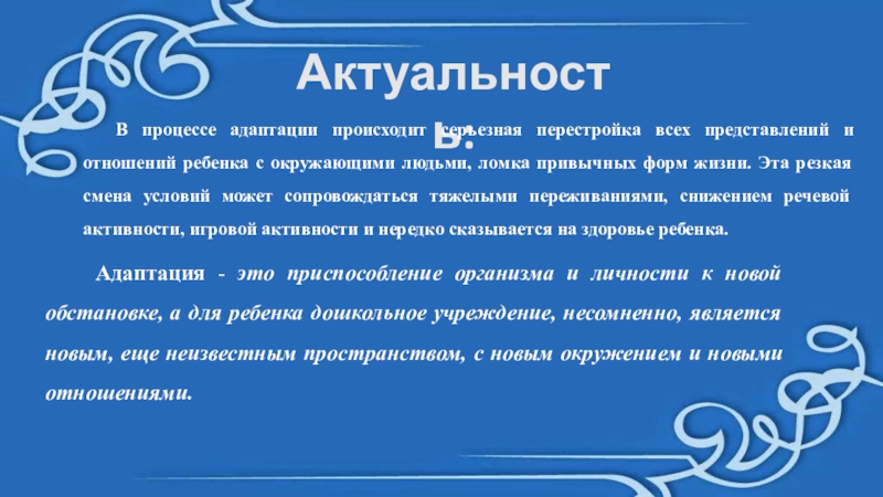 Адаптация - это приспособление организма и личности к новой обстановке, а для ребенка дошкольное учреждение, несомненно, является новым, еще неизвестным пространством, с новым окружением и новыми отношениями.