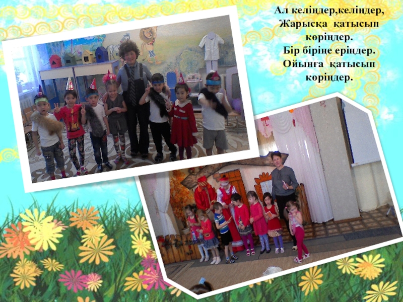 Ал келіңдер,келіңдер,Жарысқа қатысып көріңдер.Бір біріңе еріңдер.Ойынға қатысып көріңдер.