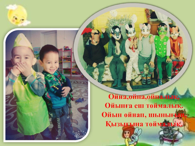 Ойна,ойна,ойналық,Ойынға еш тоймалық.Ойын ойнап, шынығып,Қызығына тоймалық.
