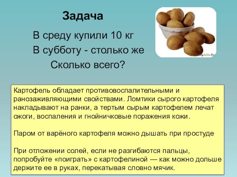 При отложении солей, если не разгибаются пальцы, попробуйте «поиграть» с картофелиной — как можно дольше держите ее в руках, перекатывая словно мячик.