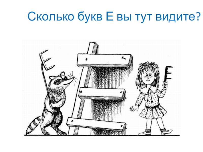 Например, если буква «Е» вставала на свои ручки-ножки, то превращалась в букву «т». А если вставала на голову, то превращалась в букву «Э». А если она ложилась на спинку, то превращалась в букву «Ш»! Вот такая волшебная буква «Е»! А ещё она была похожа на лесенку, и если кому-то была нужна её помощь, то она никогда не отказывала.