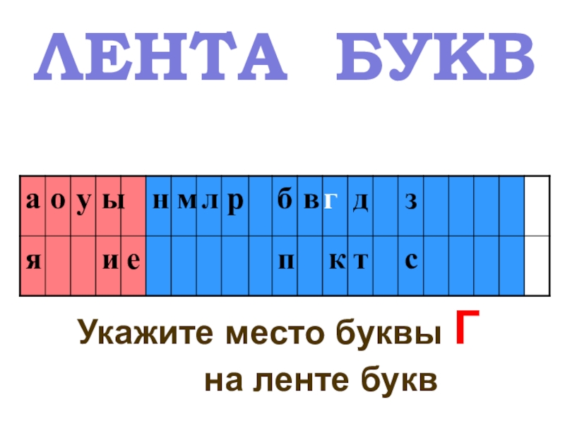 Укажите место буквы Г       на ленте букв   ЛЕНТА БУКВг