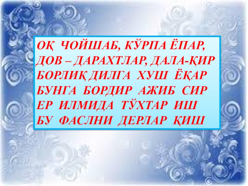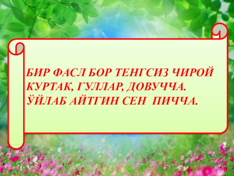 Ривожлантирувчи мақсади: ўқувчиларнин Дунёқарашини кенгайтириш, нутқ бойигини ,ўз фикрини эркин айтиш орқали эсда сақлаш қобилиятларини