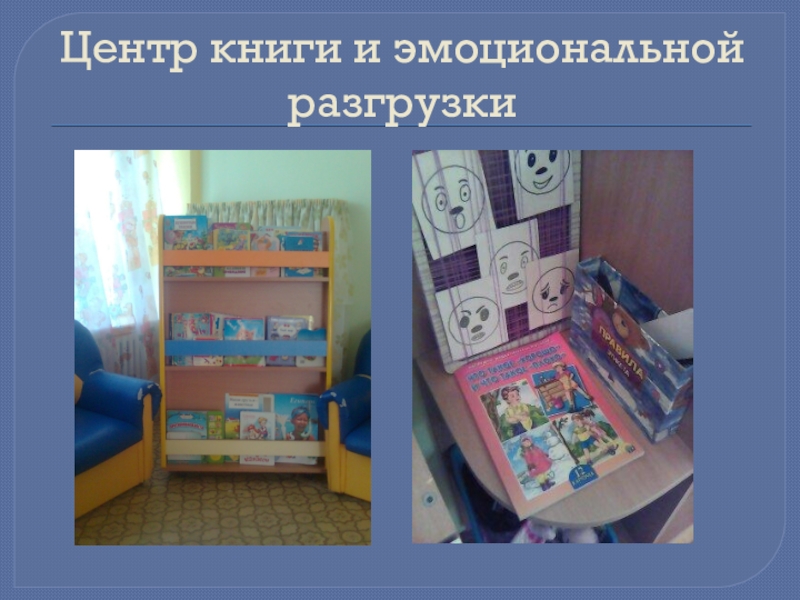 Слайд 11 Центр книги и эмоциональной разгрузки