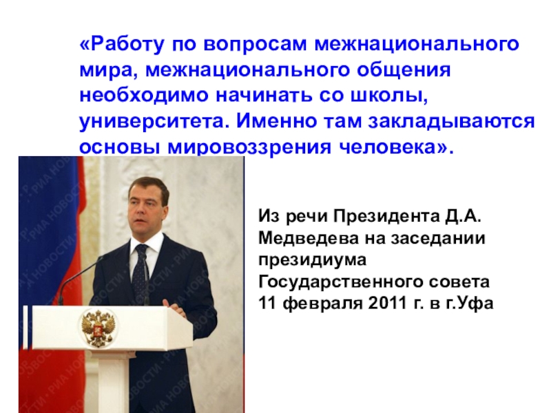 Из речи Президента Д.А.Медведева на заседании президиума Государственного совета 11 февраля 2011 г. в г.Уфа