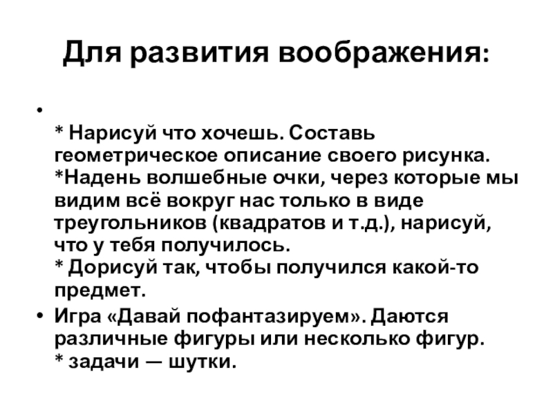 Игра «Давай пофантазируем». Даются различные фигуры или несколько фигур.