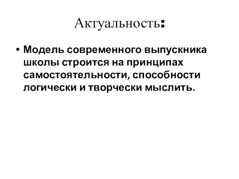 Модель современного выпускника школы строится на принципах самостоятельности, способности логически и