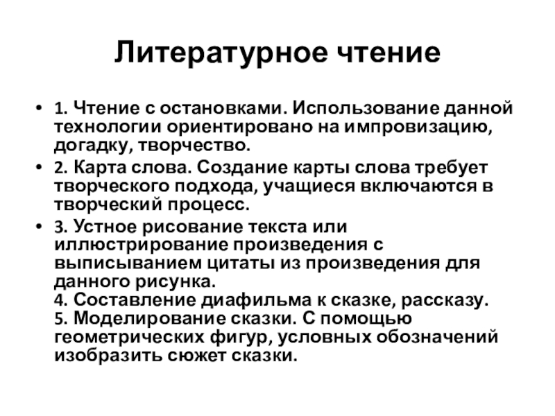 1. Чтение с остановками. Использование данной технологии ориентировано на