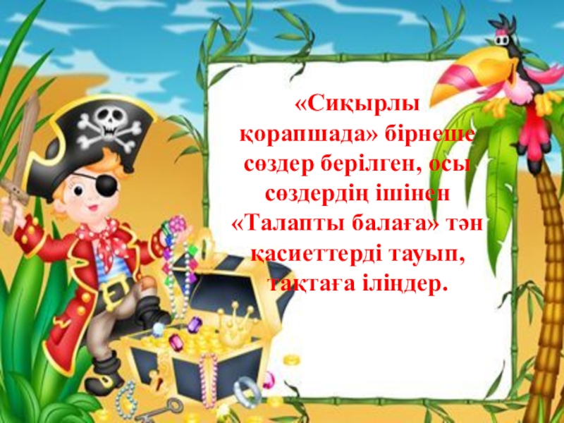 Слайд 3«Сиқырлы қорапшада» бірнеше сөздер берілген, осы сөздердің ішінен «Талапты балаға» тән