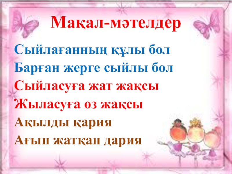 Презентация, доклад на тему ПрезинтацияАқылды тыңдай білу де өнеге
