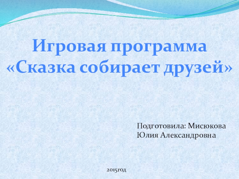 Игровая программа«Сказка собирает друзей» Подготовила: Мисюкова Юлия Александровна 2015год