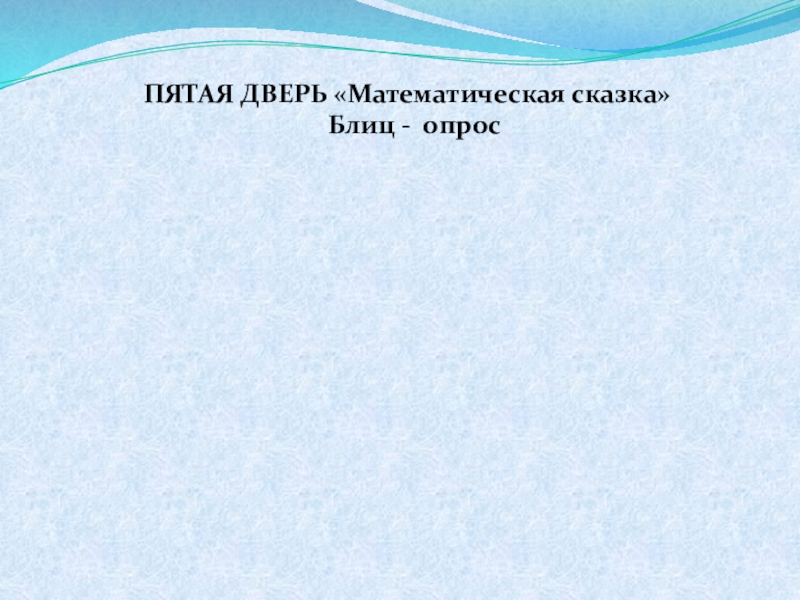 Слайд 14ПЯТАЯ ДВЕРЬ «Математическая сказка»