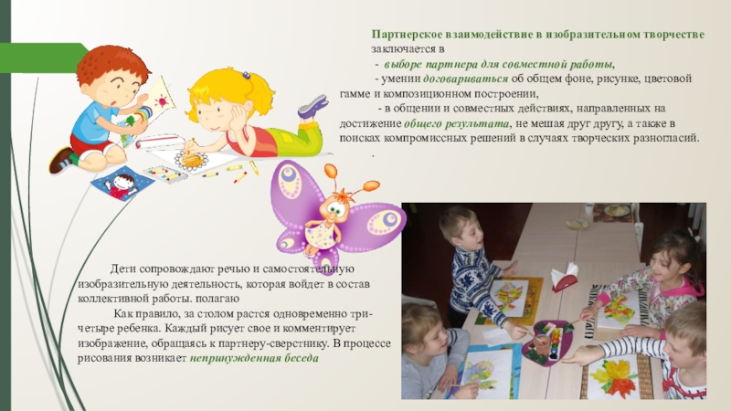 Слайд 7Партнерское взаимодействие в изобразительном творчестве