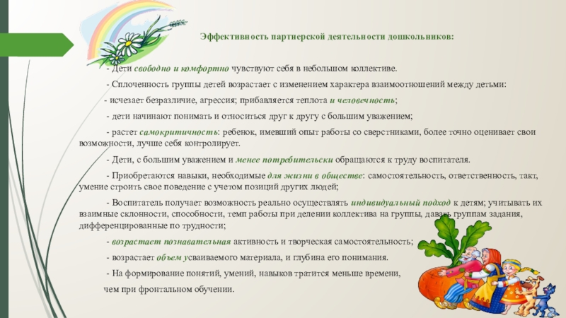 Слайд 11 Эффективность партнерской деятельности дошкольников: