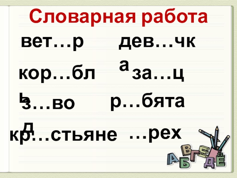 Словарная работавет…р дев…чка кор…бльза…цз…вод…рехр…бятакр…стьяне
