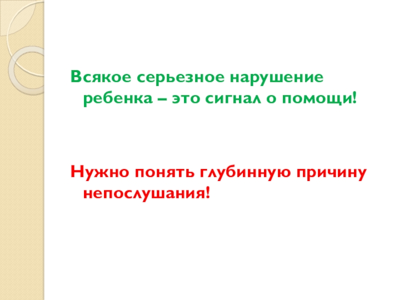 Слайд 14Всякое серьезное нарушение ребенка – это сигнал о помощи!