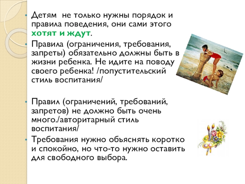 Слайд 12Детям не только нужны порядок и правила поведения, они сами этого