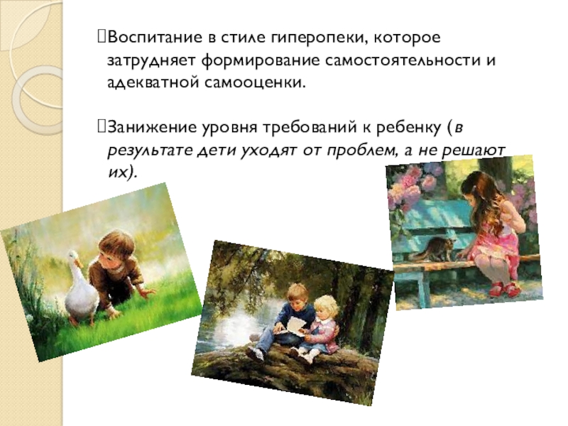 Слайд 10Воспитание в стиле гиперопеки, которое затрудняет формирование самостоятельности и адекватной самооценки.
