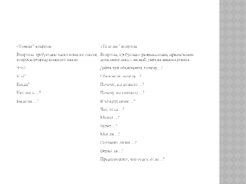 Слайд 83. Прием «толстых» и «тонких» вопросов.