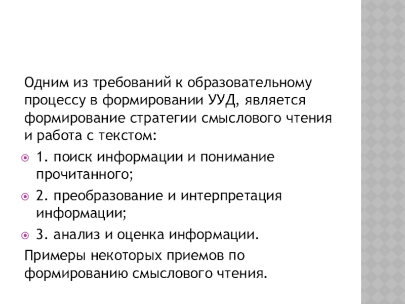 Слайд 5Одним из требований к образовательному процессу в формировании УУД, является формирование