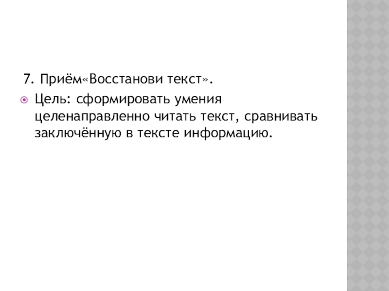 Цель: сформировать умения целенаправленно читать текст, сравнивать заключённую в