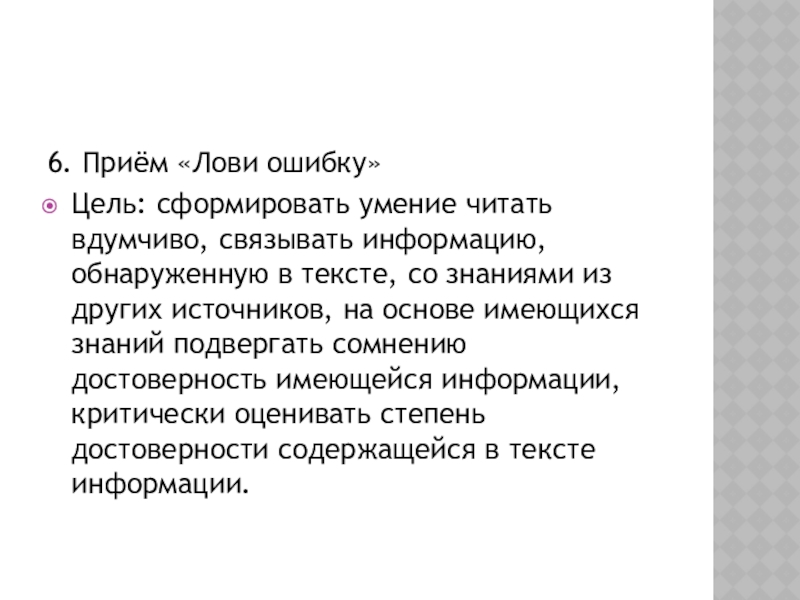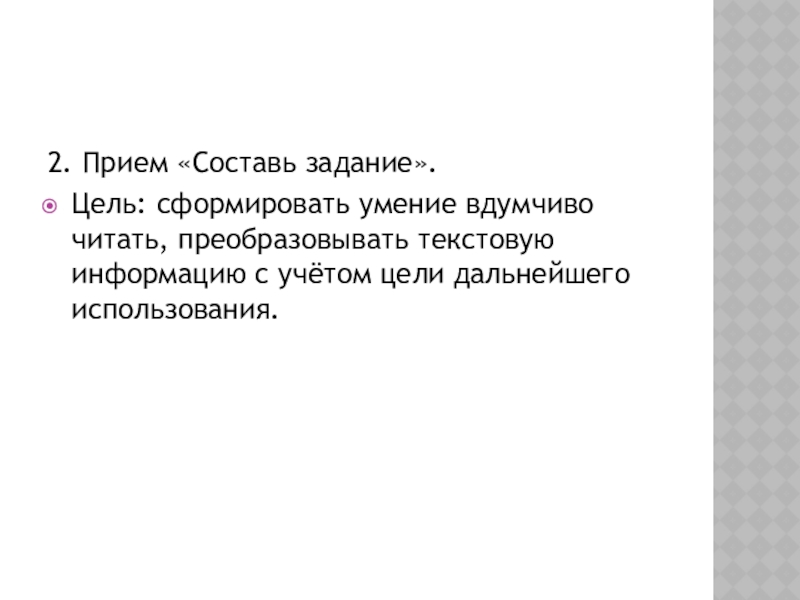Цель: сформировать умение вдумчиво читать, преобразовывать текстовую информацию