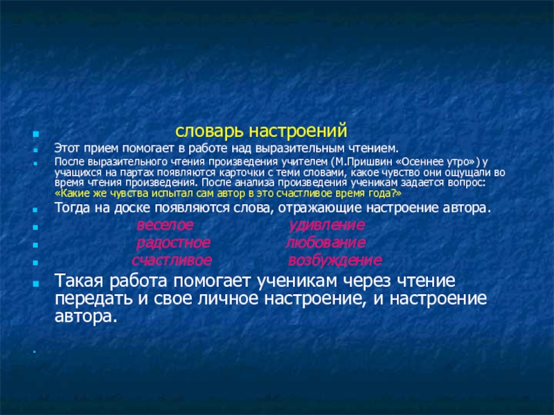 Такая работа помогает ученикам через чтение передать и свое личное настроение, и настроение автора.