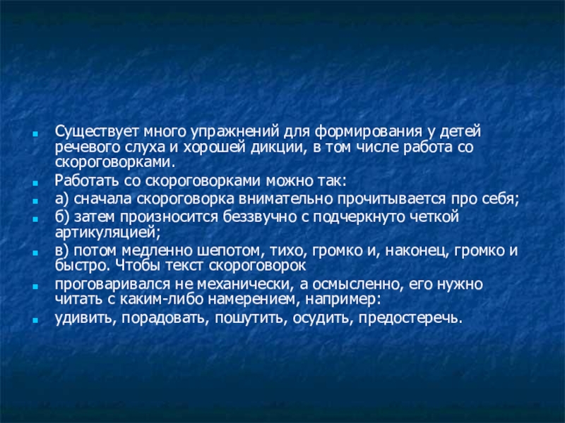 в) потом медленно шепотом, тихо, громко и, наконец, громко и быстро. Чтобы текст скороговорок