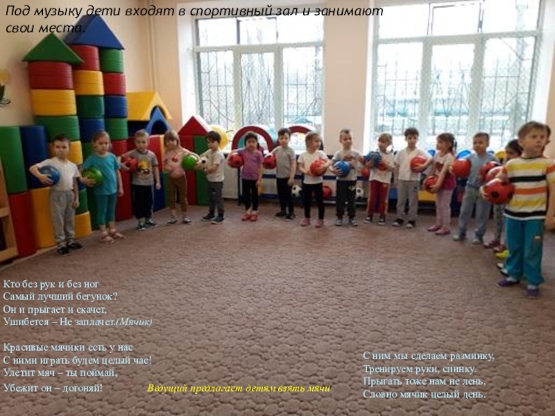 Ведущий предлагает детям взять мячи