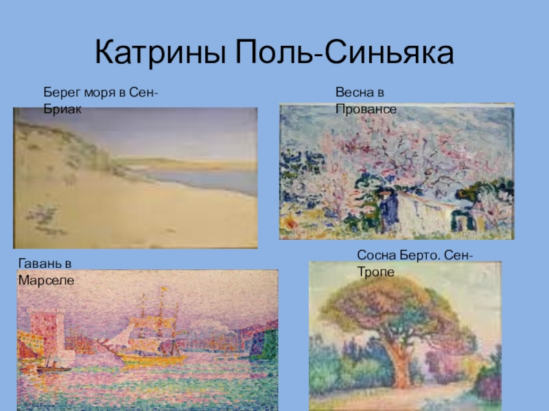 Катрины Поль-СиньякаБерег моря в Сен-БриакВесна в ПровансеСосна Берто. Сен-ТропеГавань в Марселе
