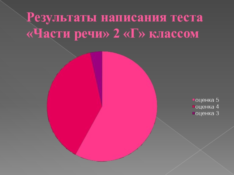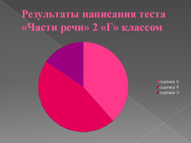 Слайд 31Результаты написания теста «Части речи» 2 «Г» классом