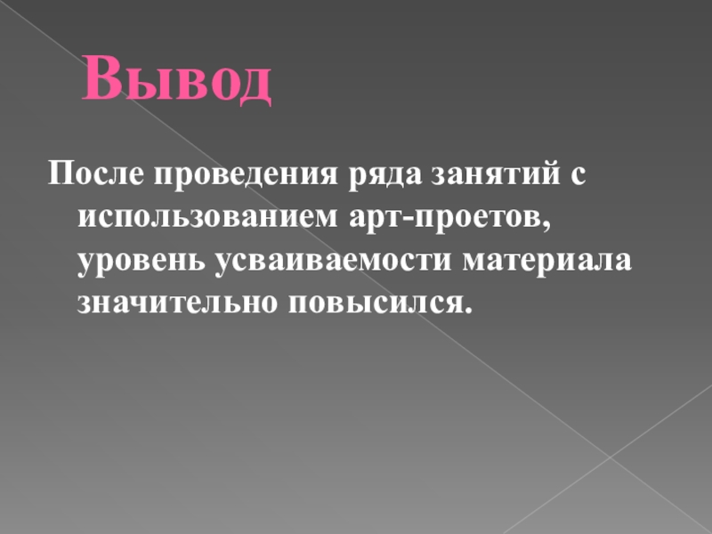 После проведения ряда занятий с использованием арт-проетов, уровень усваиваемости материала значительно