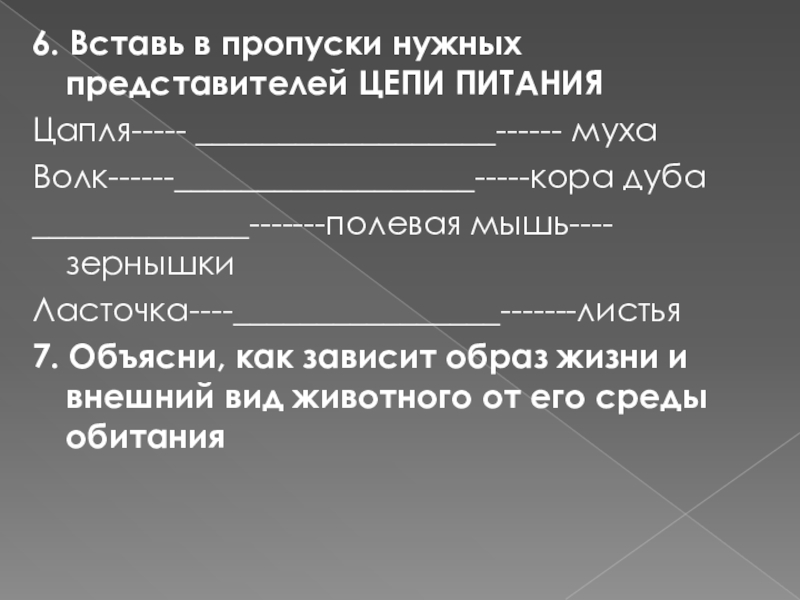 Слайд 136. Вставь в пропуски нужных представителей ЦЕПИ ПИТАНИЯ
