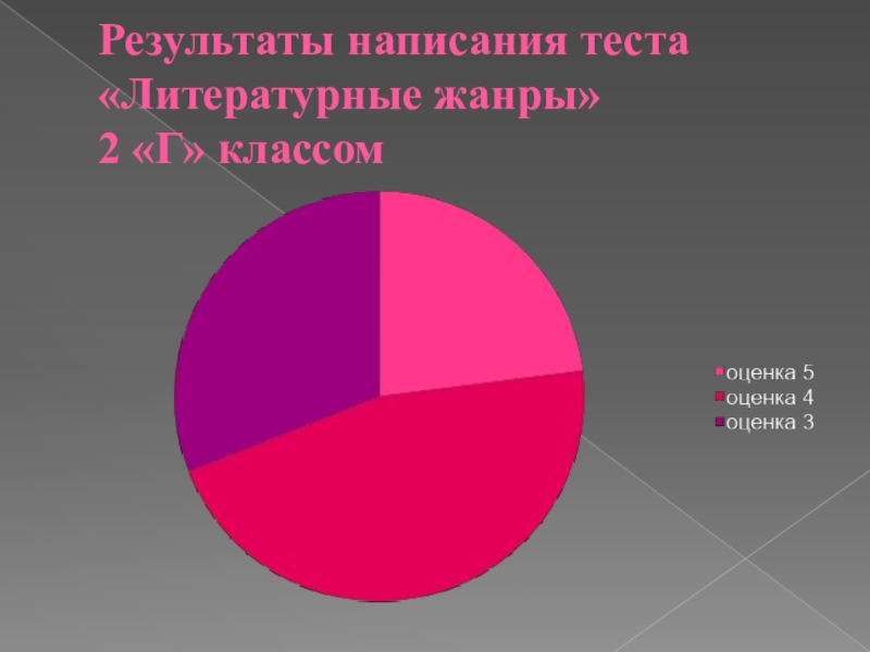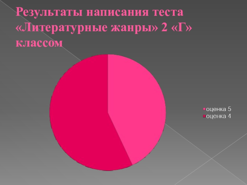 Слайд 40Результаты написания теста «Литературные жанры» 2 «Г» классом