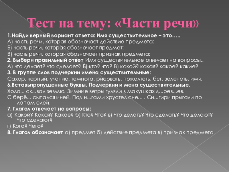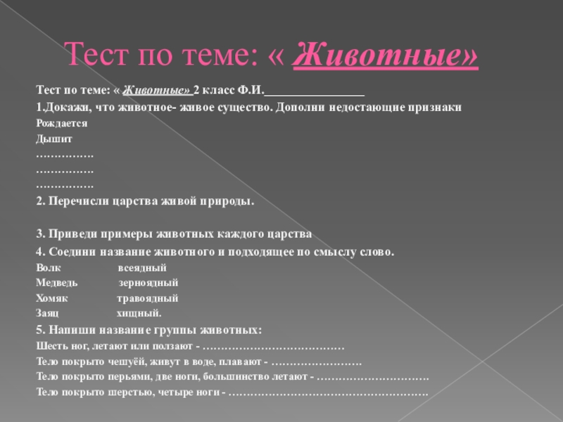 Слайд 6Тест по теме: « Животные»