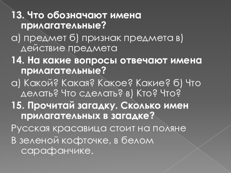Слайд 3013. Что обозначают имена прилагательные?