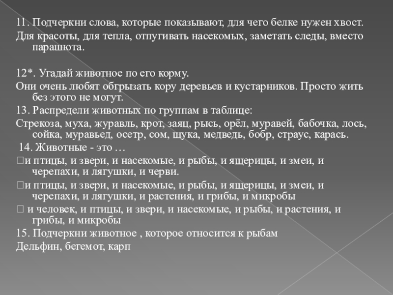 Слайд 811. Подчеркни слова, которые показывают, для чего белке нужен хвост.