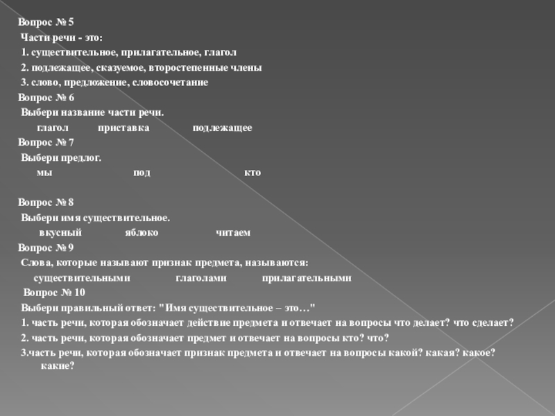 а) предмет б) признак предмета в) действие