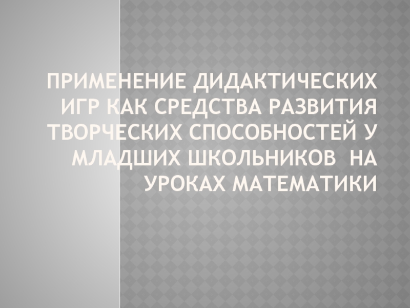 Слайд 1ПРИМЕНЕНИЕ ДИДАКТИЧЕСКИХ ИГР КАК СРЕДСТВА РАЗВИТИЯ ТВОРЧЕСКИХ СПОСОБНОСТЕЙ У младших школьников