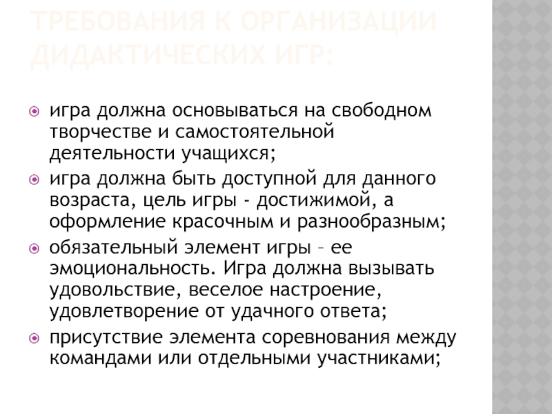 Слайд 11Требования к организации дидактических игр: