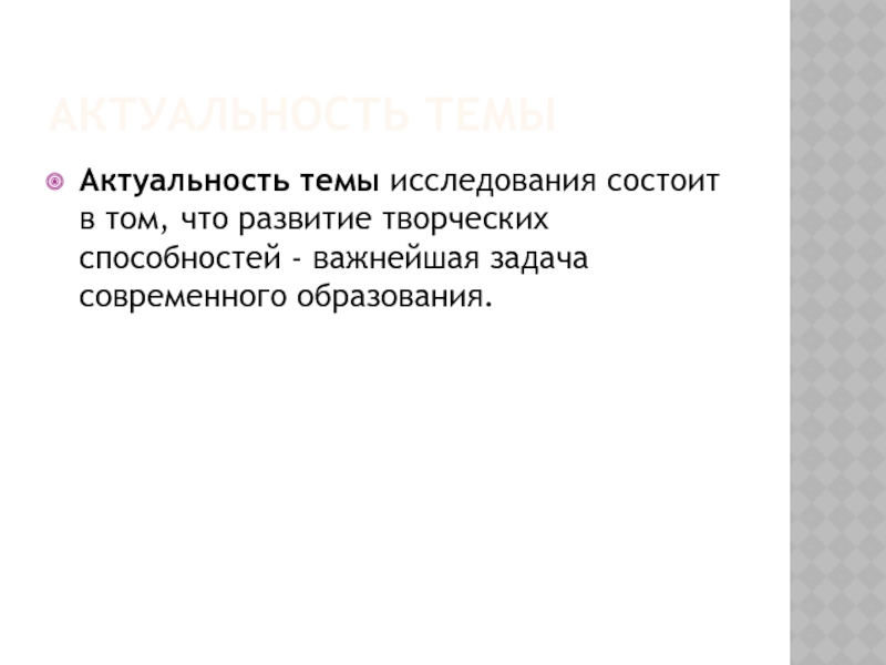 Актуальность темы исследования состоит в том, что развитие творческих способностей
