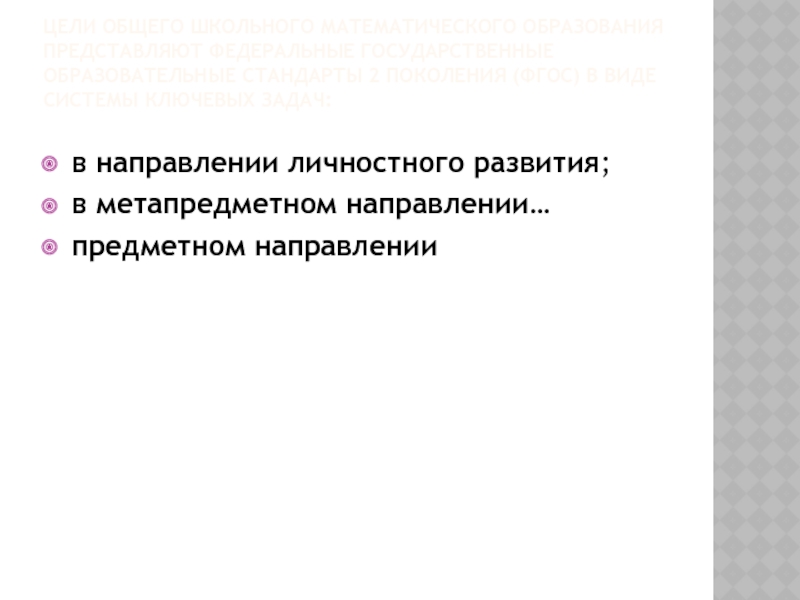 Слайд 2Цели общего школьного математического образования представляют Федеральные Государственные Образовательные Стандарты 2