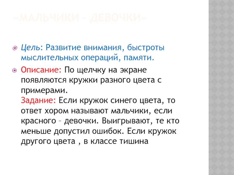 Слайд 20«Мальчики – Девочки»