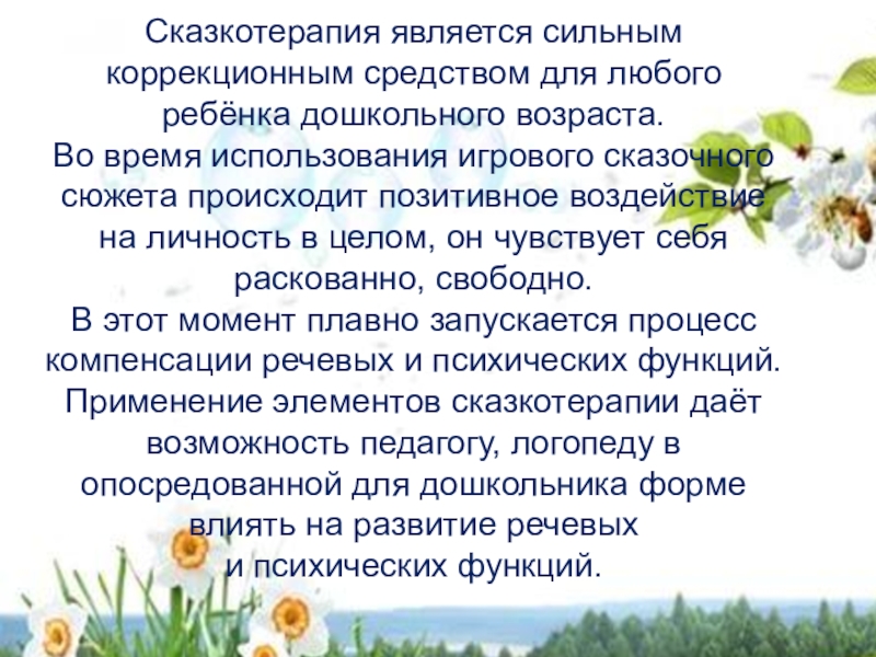 Слайд 25Сказкотерапия является сильным коррекционным средством для любого ребёнка дошкольного возраста.