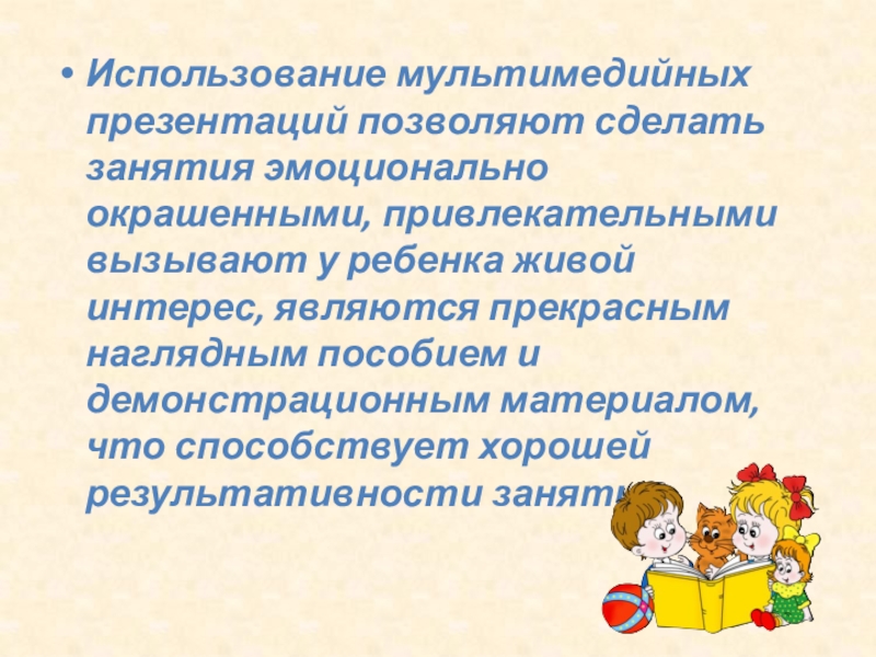 Слайд 7Использование мультимедийных презентаций позволяют сделать занятия эмоционально окрашенными, привлекательными вызывают у