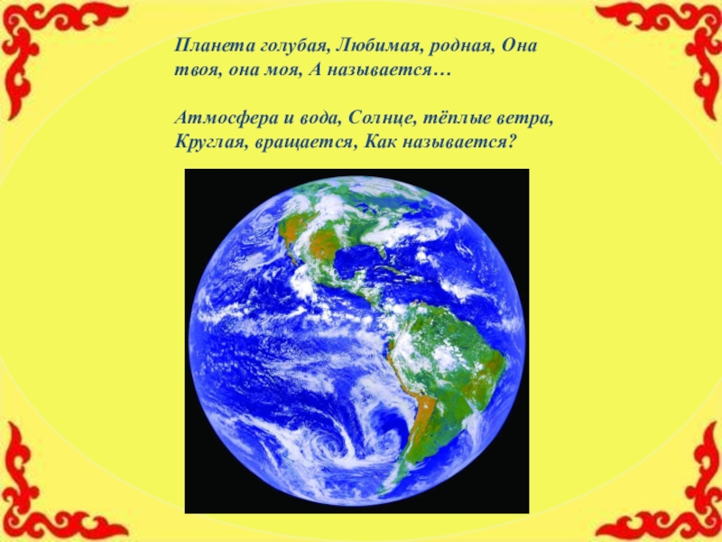 Слайд 28Планета голубая, Любимая, родная, Она твоя, она моя, А называется…