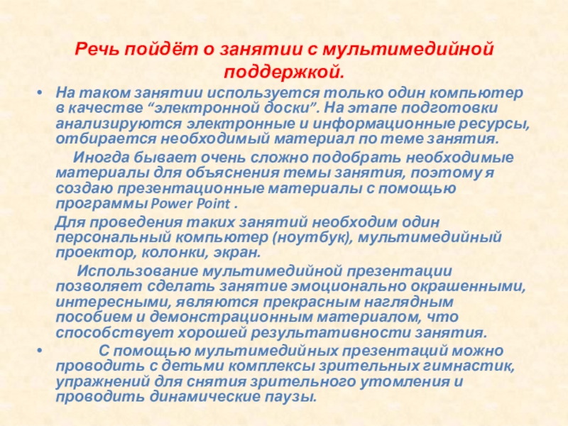 Речь пойдёт о занятии с мультимедийной поддержкой.
